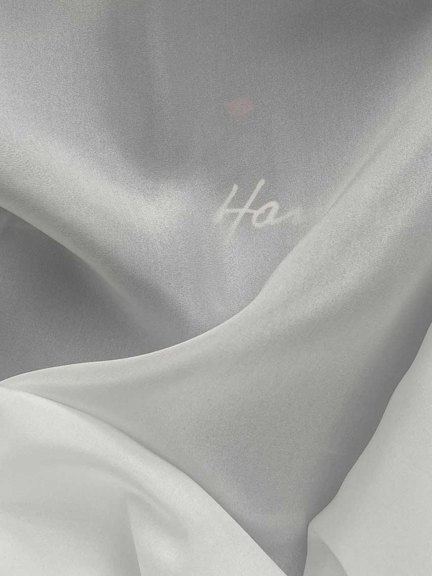 Warp: 2/20/22D, weft: 3/20/22D raw silk.