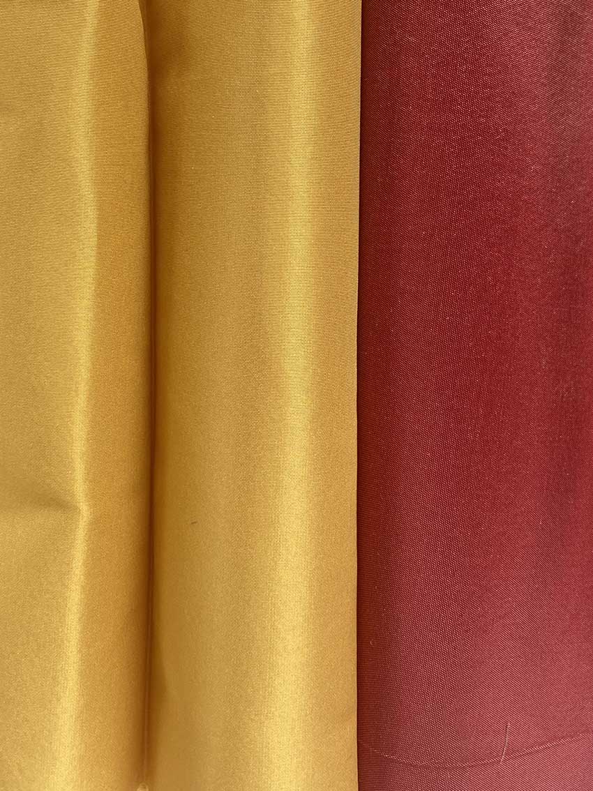 Warp: silk yarn colored, Weft: silk yarn colored.